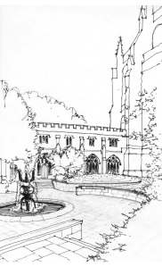 As Cathedral Conservator at Washington National Cathedral, John Runkle worked with several governance committees to develop a design for an exterior columbarium, to be constructed in the Cathedral’s Garth that would inter cremated remains in biodegradable containers underground with simple, elegant markers discretely located on a garden wall.