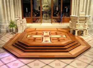 As Cathedral Conservator at Washington National Cathedral, John Runkle led the effort to design, fabricate and install the new Nave Crossing Platform. While the design of the new platform is visually compatible with interior of the worship space, it is also portable, with the capability of being either dismantled or enlarged to accommodate the variety of events that take place at this primary location in the Cathedral.
